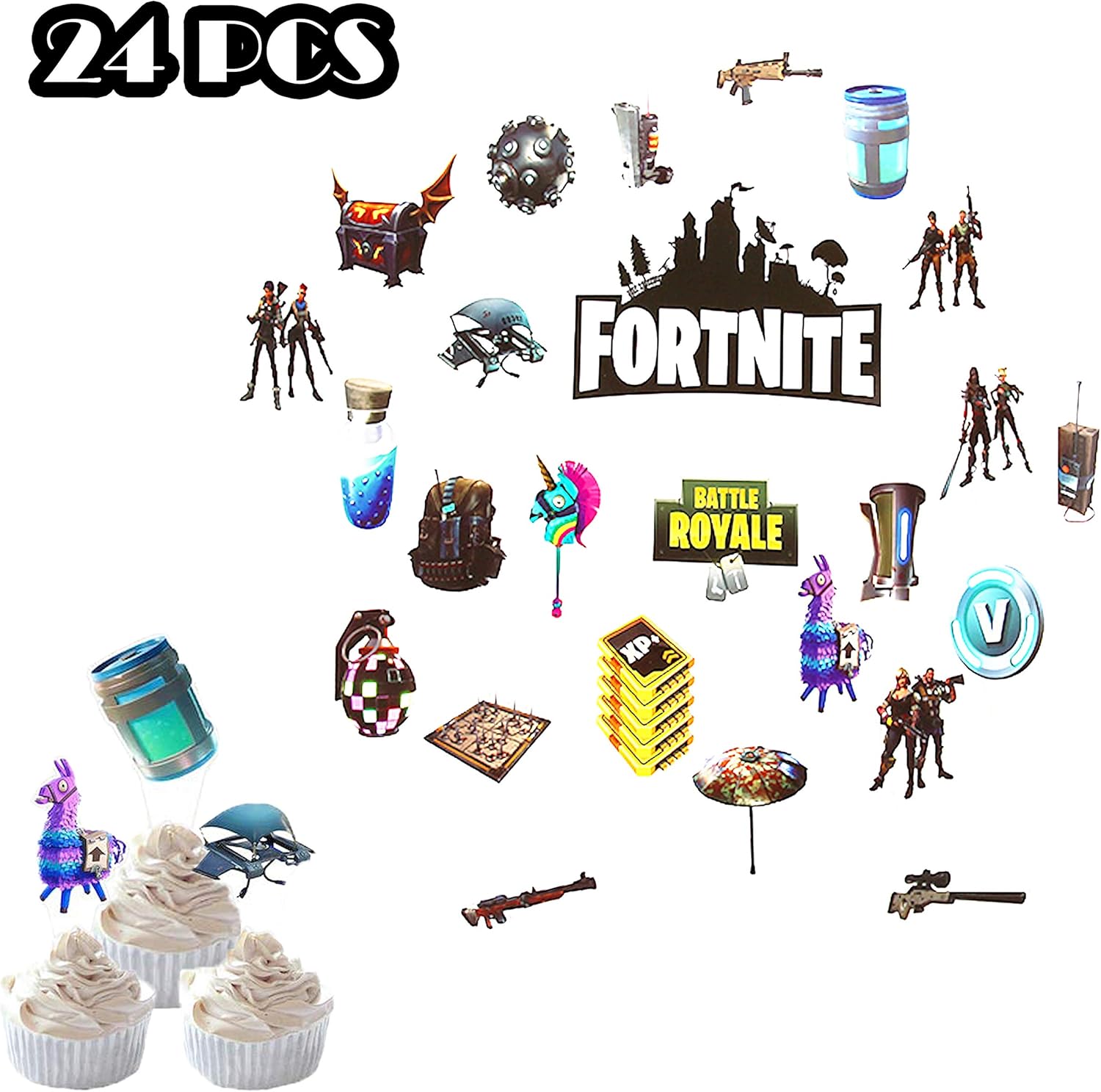 Isales 24pcs Fortnite Battle Royale Cake Topper Happy Birthday